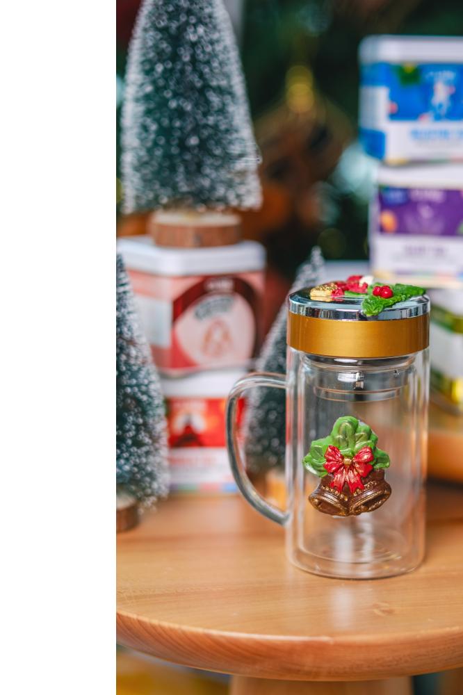 Yılbaşı Temalı çift cidarlı, çift camlı bardaklarımız kendinden süzgeçlidir.